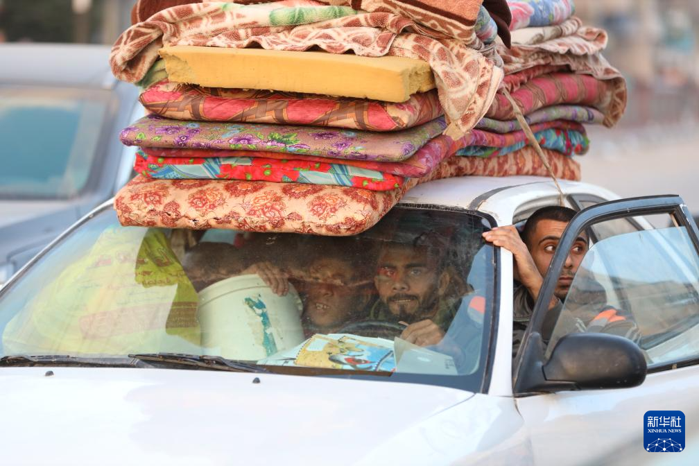 2023年12月22日,巴勒斯坦人从加沙地带中部的布赖杰难民营向南撤离。