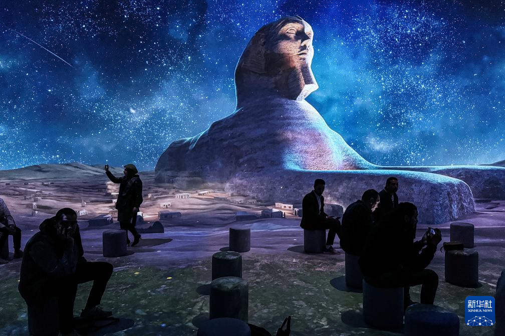2023年11月20日,人们在埃及吉萨的大埃及博物馆参观图坦卡蒙沉浸式展览。