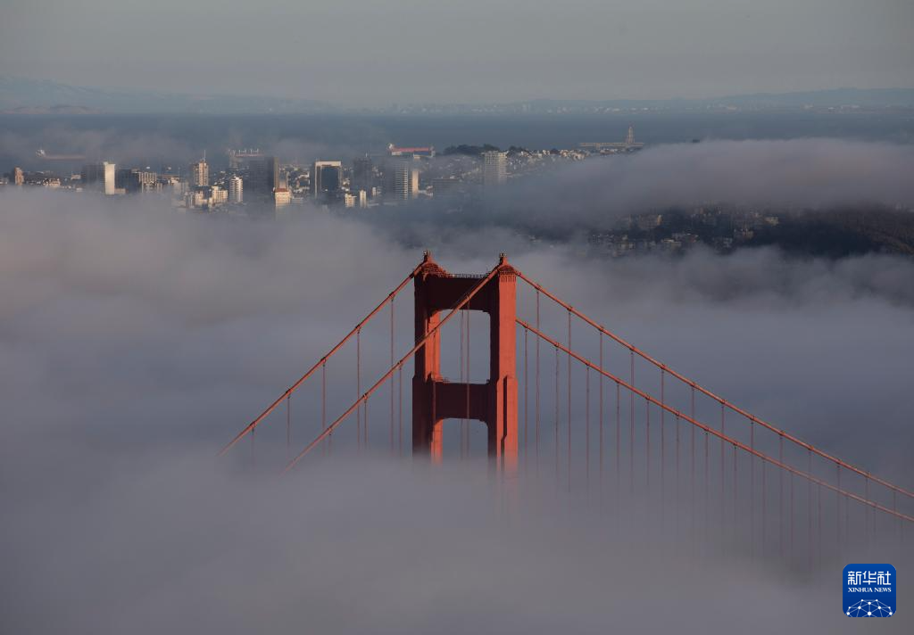2023年10月17日,美国加利福尼亚州旧金山出现云海景观。