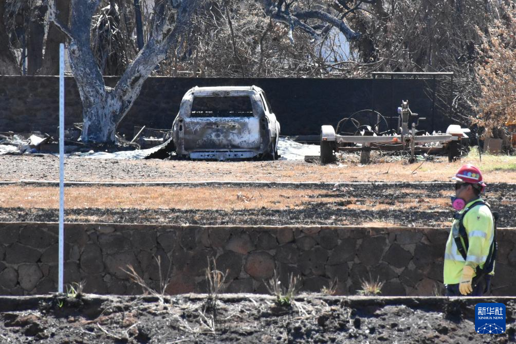 2023年8月22日,工作人员在美国夏威夷州拉海纳镇进行修复工作。