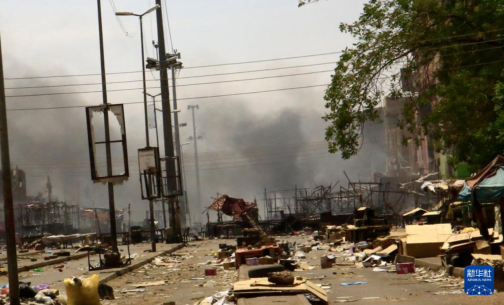 这是2023年4月18日在苏丹喀土穆拍摄的武装冲突爆发后的街头景象。