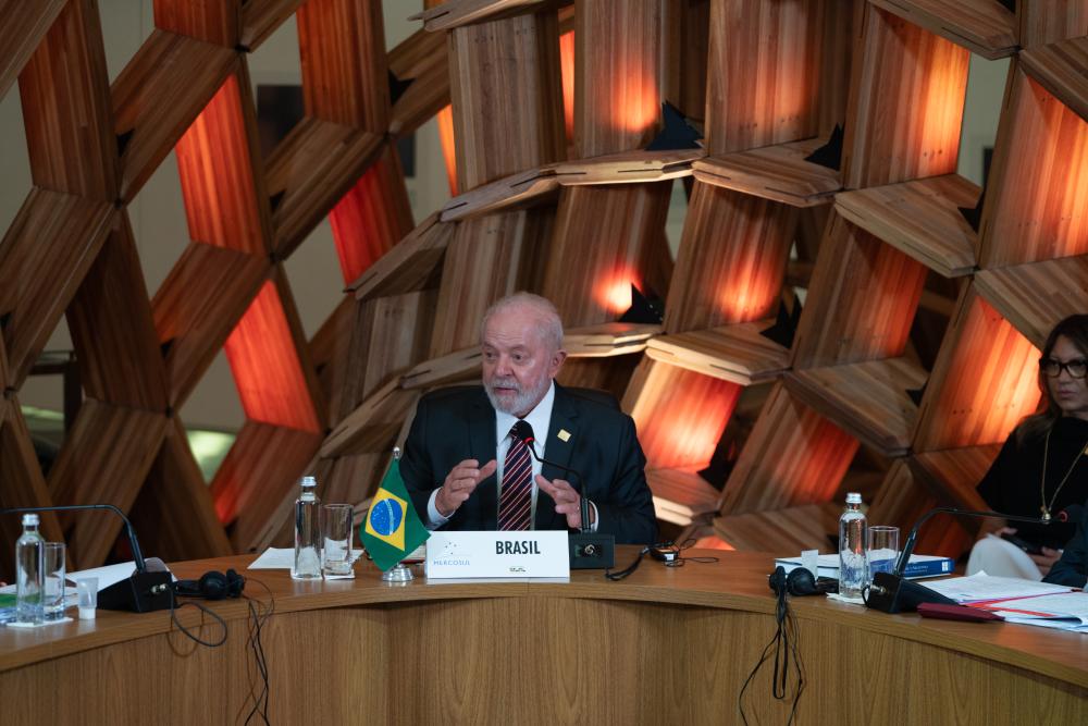 2023年12月7日,在巴西里约热内卢,巴西总统卢拉在南方共同市场(南共市)第63次首脑会议上发表讲话。南共市是拉美地区最重要的经济一体化组织之一。新华社记者王天聪摄
