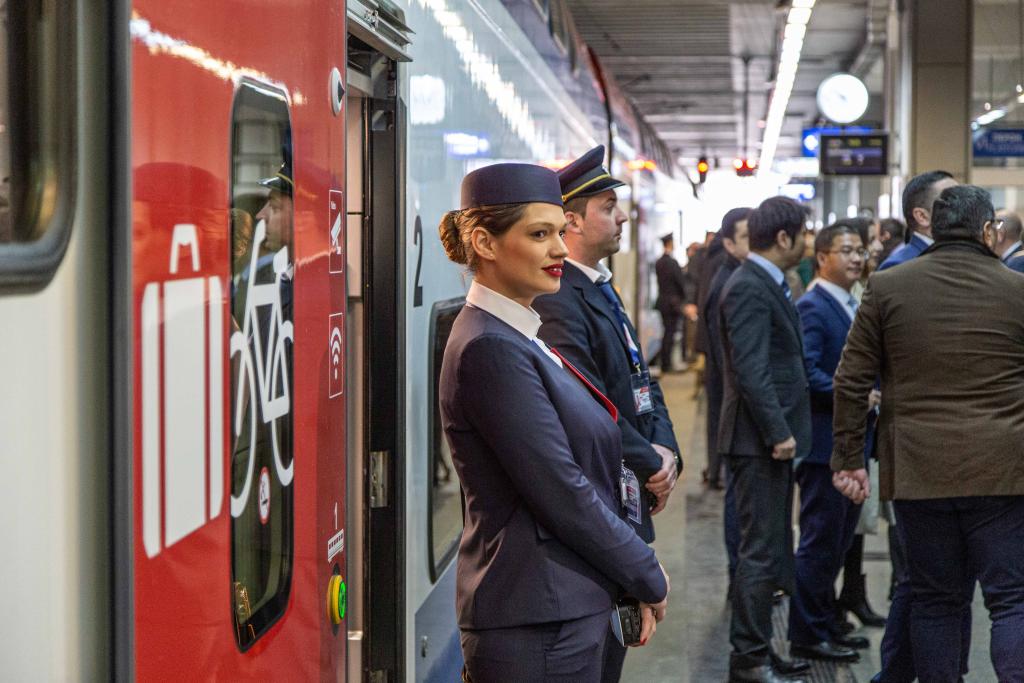 2022年3月19日,在塞尔维亚首都贝尔格莱德,乘务员在等待乘客上车。匈塞铁路塞尔维亚境内塞首都贝尔格莱德至中北部城市诺维萨德段(贝诺段)当日开通运营。(新华社发,王韡摄)