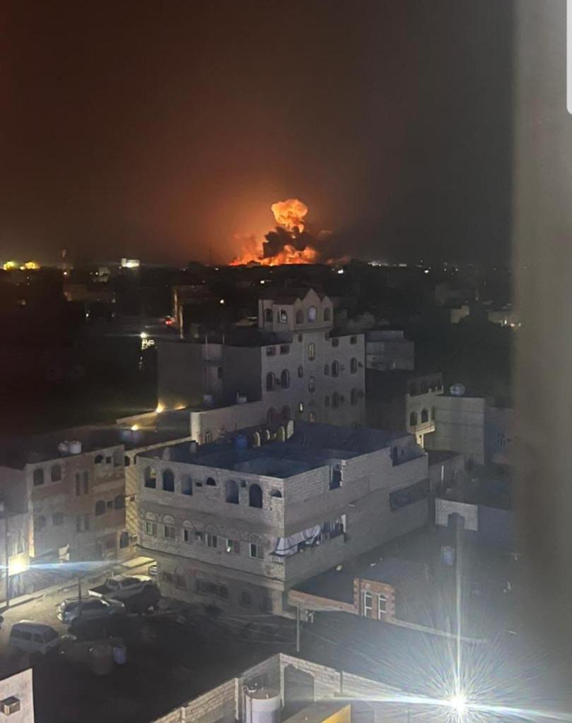这是1月12日在也门首都萨那拍摄的空袭后的爆炸画面(手机照片)。新华社发