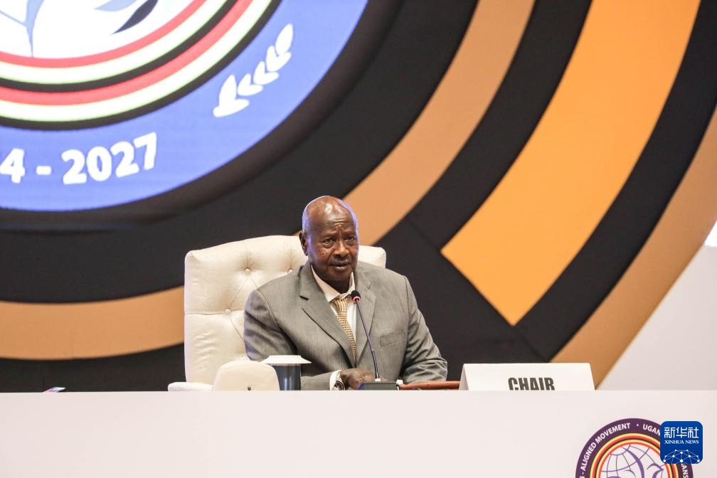 1月19日,乌干达总统穆塞韦尼在坎帕拉举行的不结盟运动第19次峰会开幕式上讲话。 新华社发(阿佳拉·纳瓦达摄)