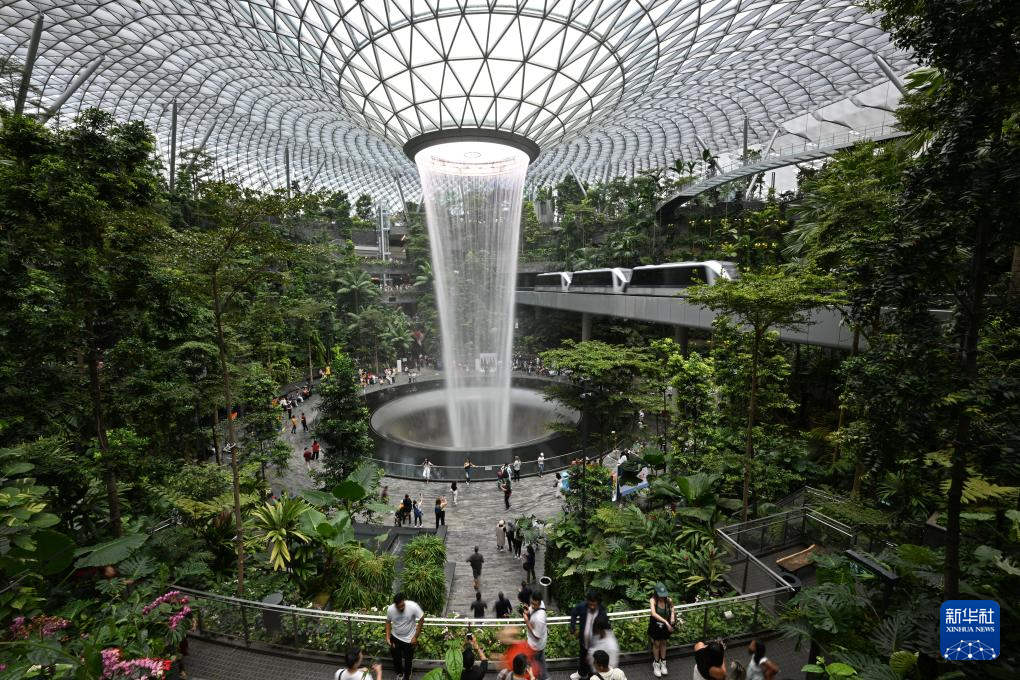 这是2023年9月7日,人们在新加坡樟宜机场的“星耀樟宜”处游览。