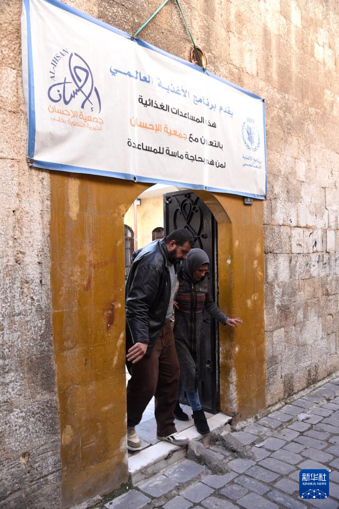 1月24日,民众离开联合国世界粮食计划署(世粮署)位于叙利亚北部城市阿勒颇的登记中心。新华社发(蒙塞夫摄)