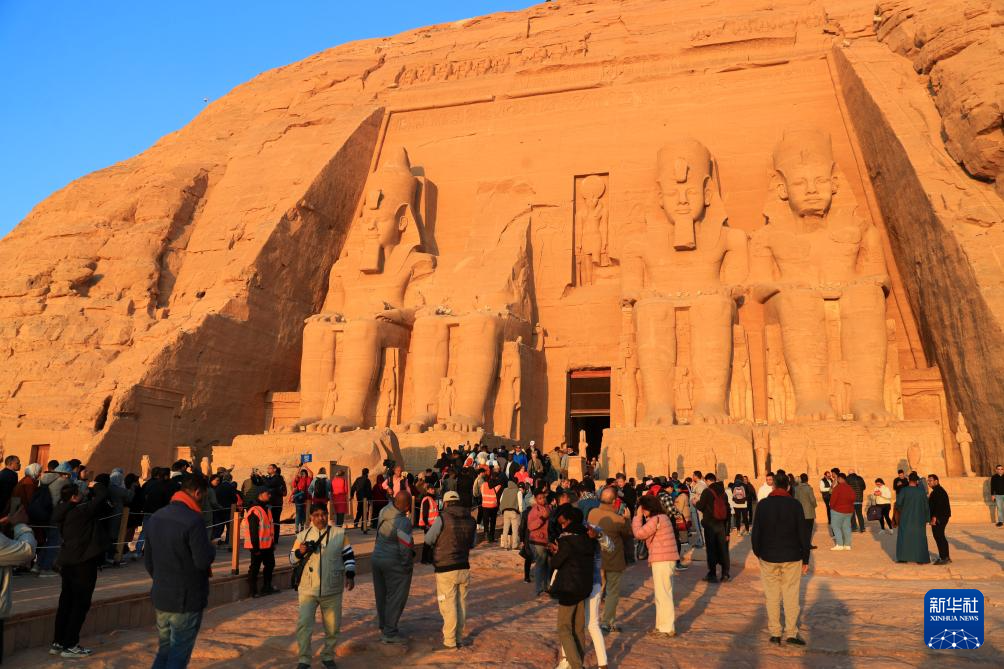 2月22日,游客在埃及南部阿斯旺省的阿布·辛拜勒神庙参观。