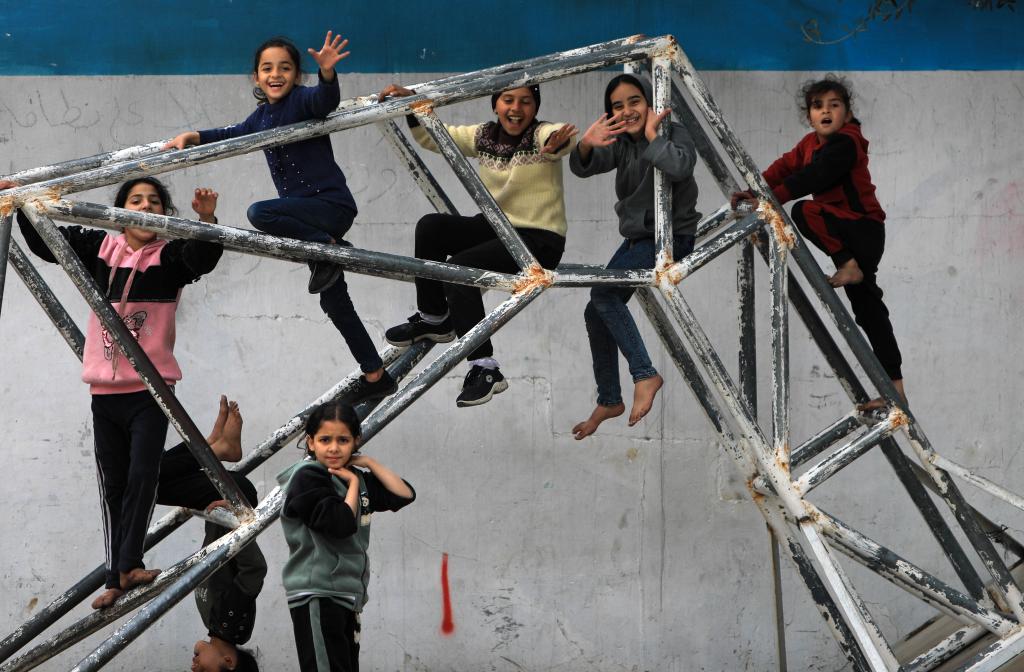 这是2月23日在加沙地带中部迈加齐难民营拍摄的儿童。新华社发(亚西尔·库迪摄)