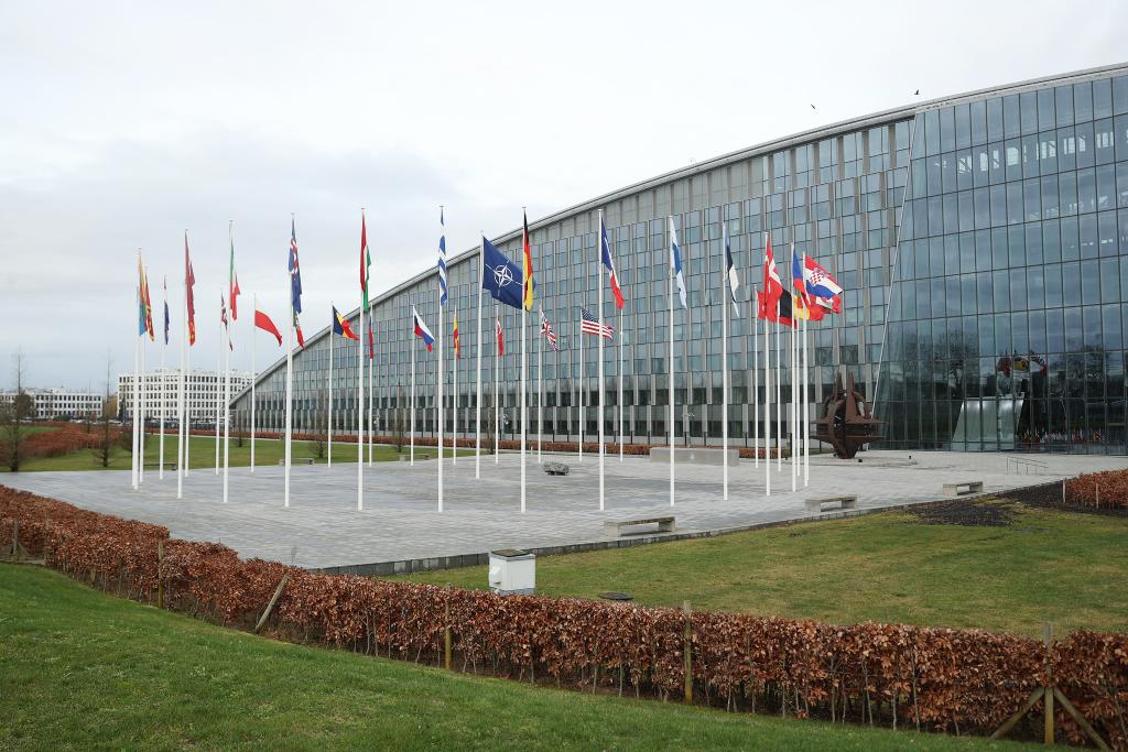 这是2月15日在比利时布鲁塞尔拍摄的北约总部一角。新华社记者赵丁喆摄