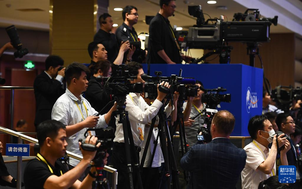 3月28日,博鳌亚洲论坛2024年年会开幕式在海南博鳌举行。这是媒体记者在开幕式上采访拍摄。