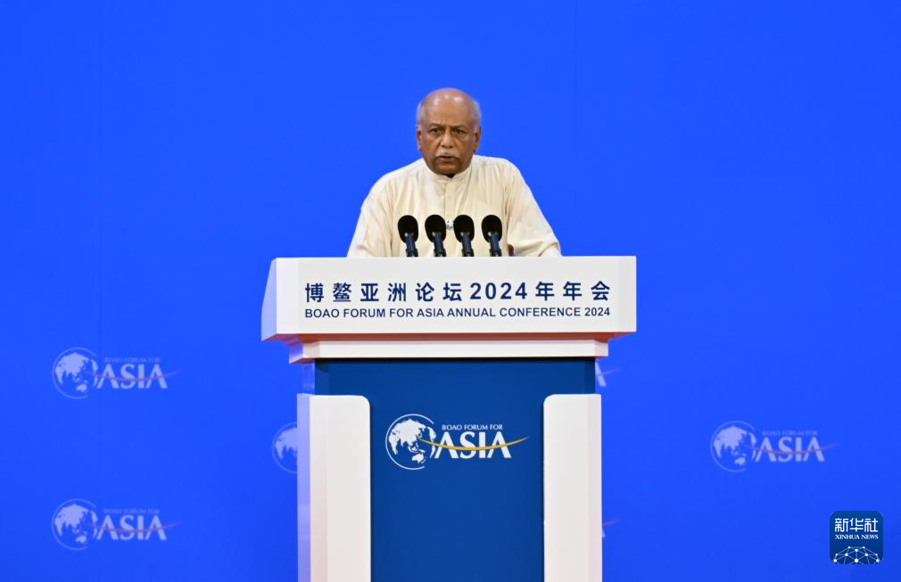 3月28日,博鳌亚洲论坛2024年年会开幕式在海南博鳌举行。这是斯里兰卡总理古纳瓦德纳在开幕式上致辞。