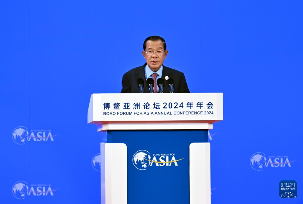 3月28日,博鳌亚洲论坛2024年年会开幕式在海南博鳌举行。这是柬埔寨国王顾问团主席洪森在开幕式上致辞。