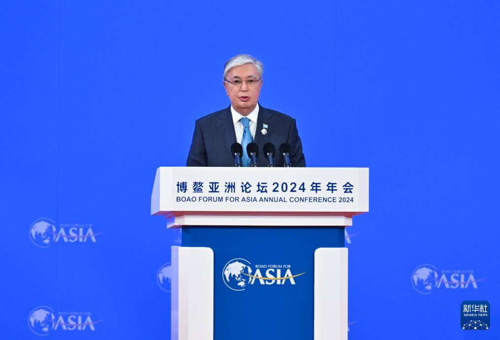 3月28日,博鳌亚洲论坛2024年年会开幕式在海南博鳌举行。这是哈萨克斯坦总统托卡耶夫在开幕式上致辞。