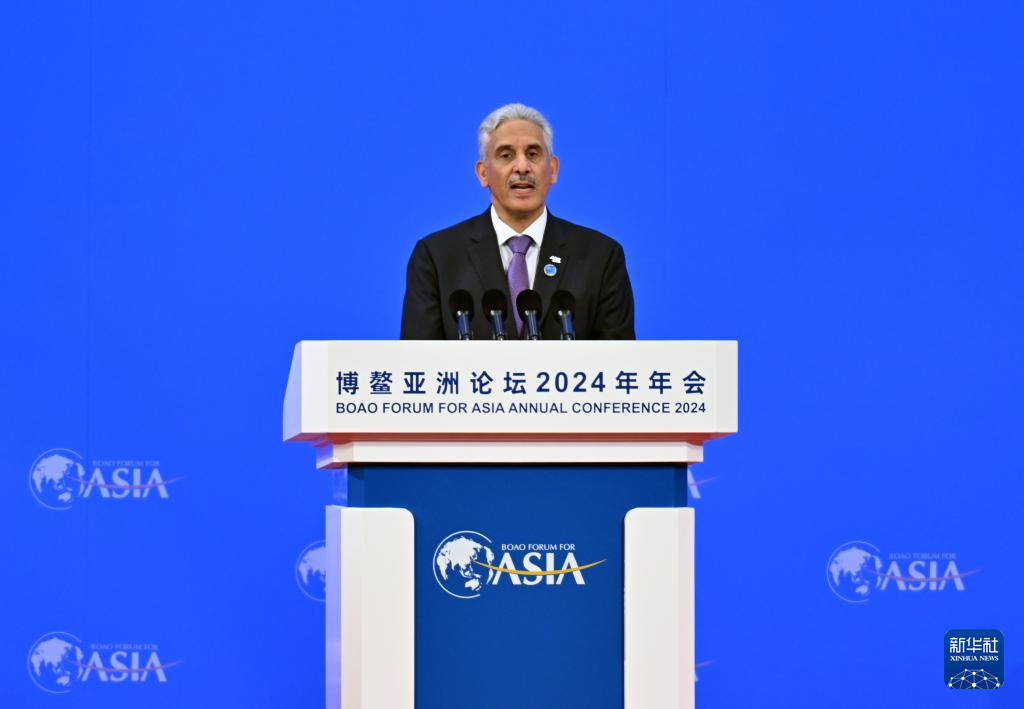 3月28日,博鳌亚洲论坛2024年年会开幕式在海南博鳌举行。这是沙特基础工业公司首席执行官阿卜杜拉哈曼·阿尔-法季在开幕式上致辞。