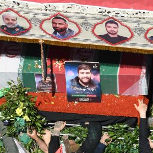 当天,在伊朗首都德黑兰,集会民众还为1日在伊朗驻叙使馆遭袭事件中丧生的7名伊朗伊斯兰革命卫队成员举行了葬礼。