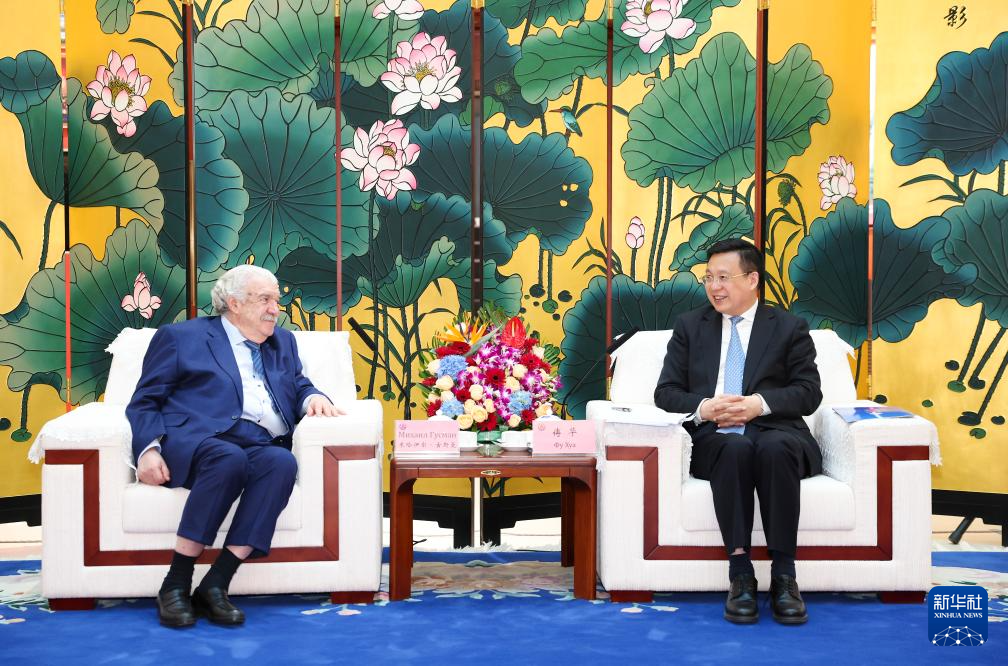 4月8日,新华社社长傅华在北京会见俄罗斯塔斯社第一副社长古斯曼。 新华社记者 黄敬文 摄