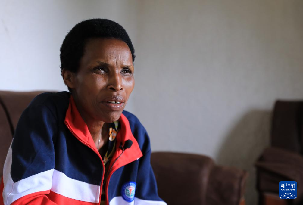 4月7日,在卢旺达东方省姆比约团结和解村,杰奎琳在家中接受采访。新华社记者 董江辉 摄