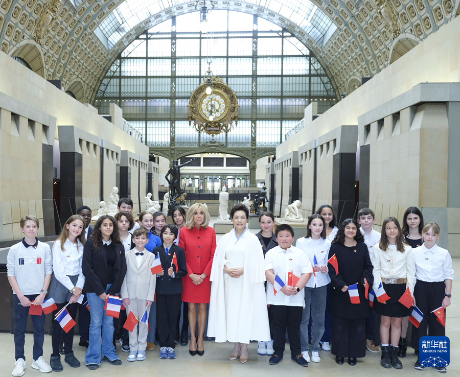 当地时间5月6日下午,国家主席习近平夫人彭丽媛在巴黎应邀同法国总统马克龙夫人布丽吉特共同参观奥赛博物馆。新华社记者 岳月伟 摄