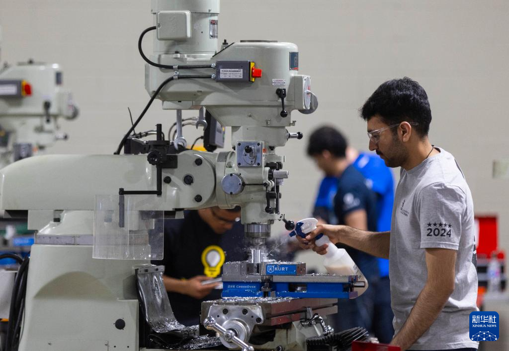 5月6日,在加拿大多伦多举行的安大略省学生技能大赛中,一名学生参加精密加工比赛。