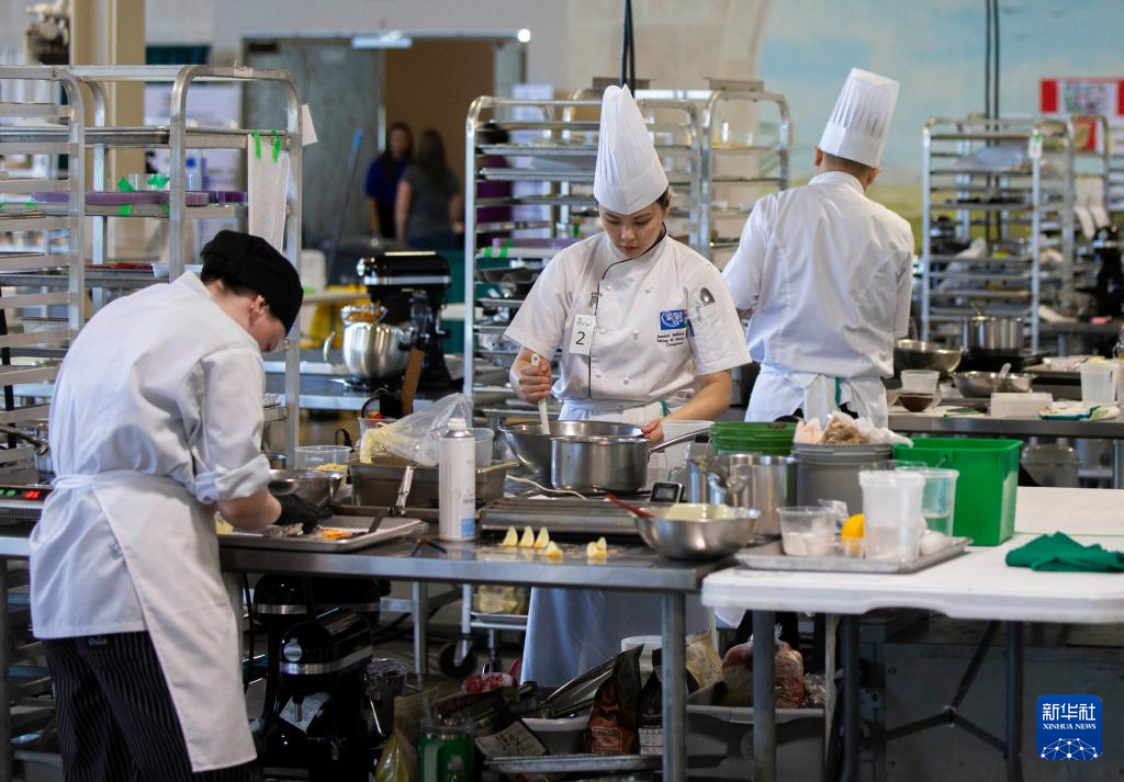 5月6日,在加拿大多伦多举行的安大略省学生技能大赛中,学生参加烘焙比赛。