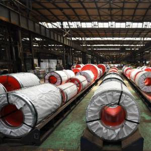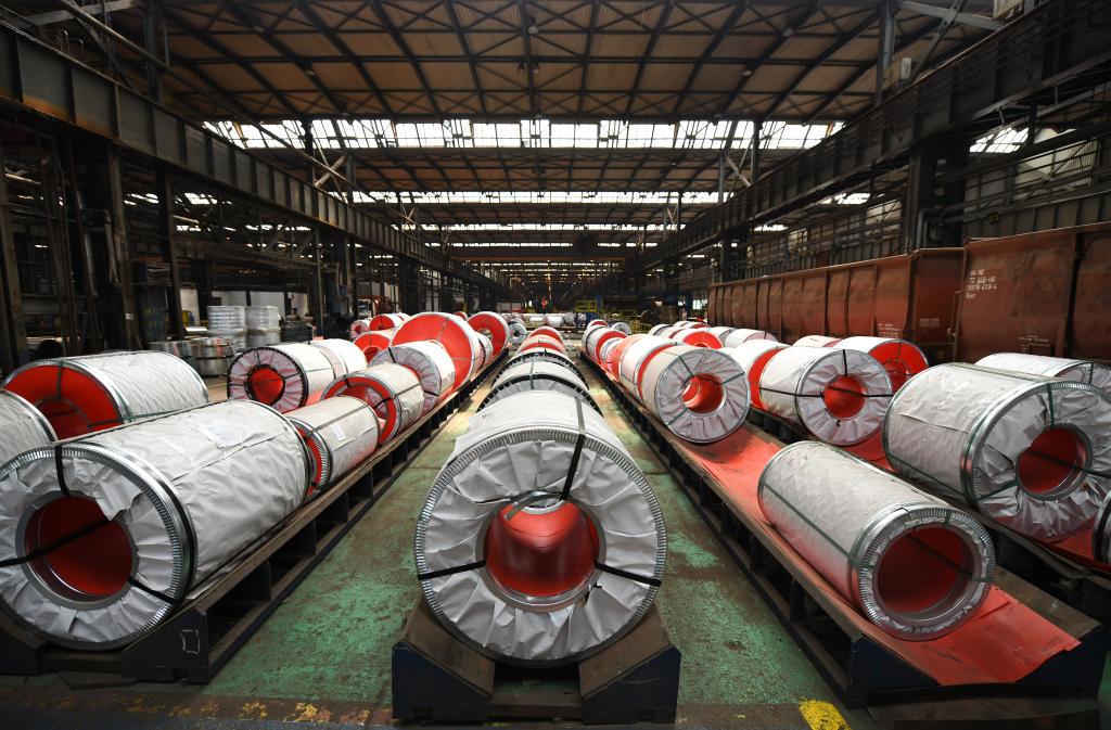 这是在河钢集团塞尔维亚斯梅戴雷沃钢厂拍摄的成品钢卷(2023年5月5日摄)。新华社记者任鹏飞摄