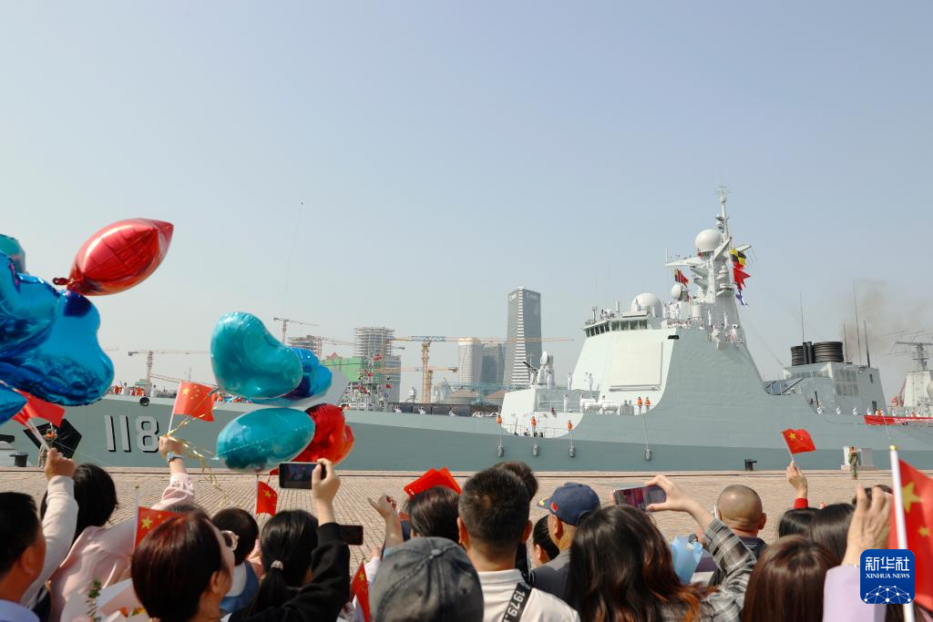 5月17日,中国海军第45批护航编队完成任务返回山东青岛。新华社发(王远方 摄)