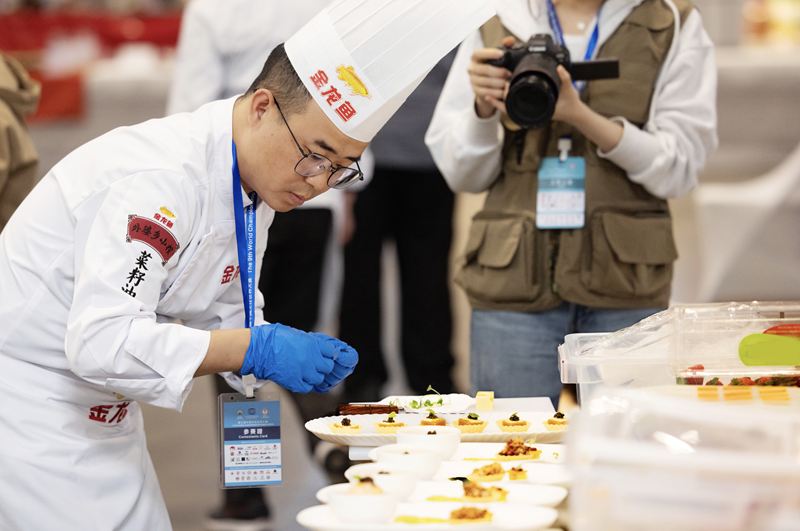 比赛现场,金龙鱼中华名厨队郭长健荣获本届中国烹饪世界大赛冷菜个人特金奖