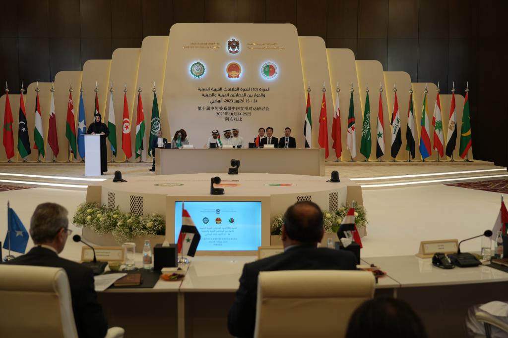 2023年10月24日,第十届中阿关系暨中阿文明对话研讨会在阿联酋阿布扎比举行。新华社记者苏小坡摄