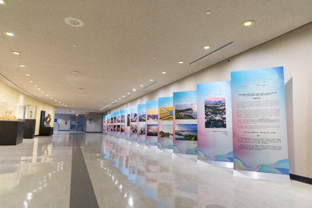 据了解,本次“水韵江苏与世界的对话·共享美好生活”艺术展将持续至7月5日,还特别展出了10多幅回顾江苏与纽约州两地友好交流历史的摄影作品。开幕式现场,江苏文旅专题推介、“水韵江苏”入境游线路推介等同步展开。(陆润卿/摄)
