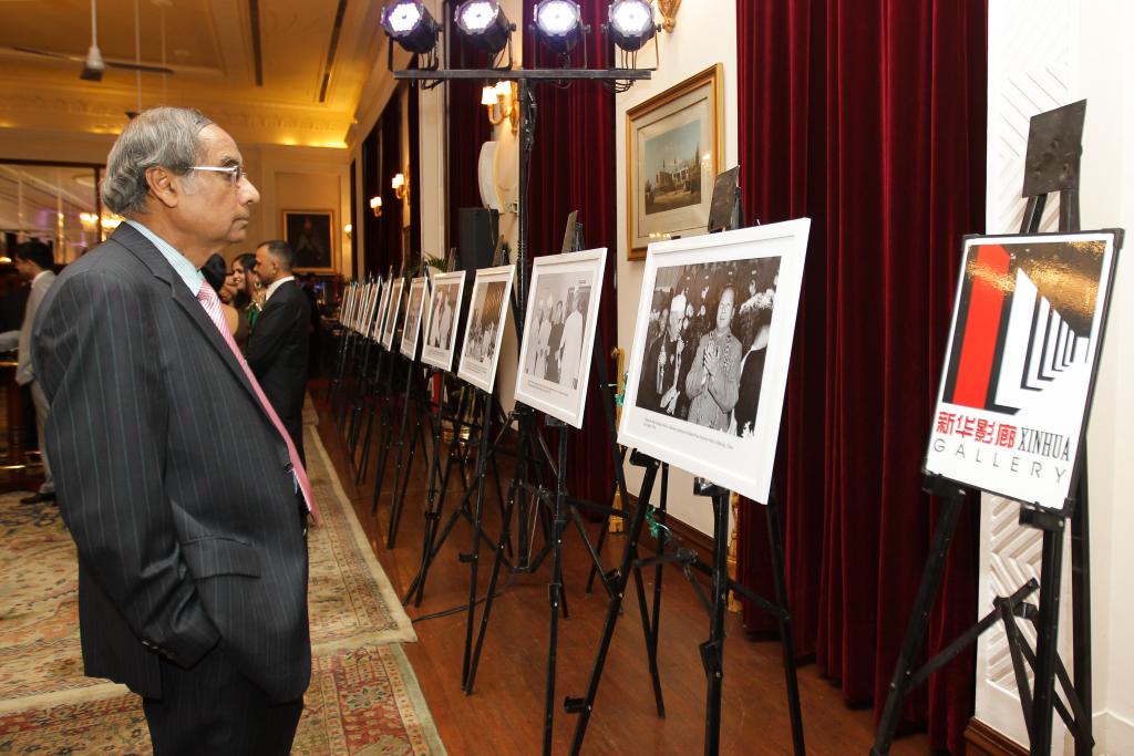 2014年6月11日,在印度首都新德里,来宾观看纪念和平共处五项原则发表60周年图片展。新华社记者郑焕松摄