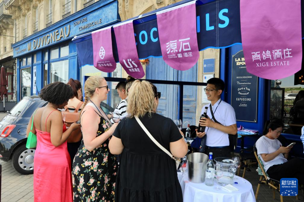 6月27日,宁夏贺兰山东麓葡萄酒产区参展酒庄的工作人员在法国波尔多市举行的2024波尔多葡萄酒节上推介葡萄酒。新华社发(受访者供图)