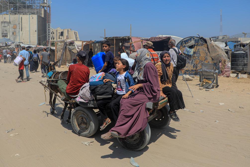 7月22日,在加沙地带南部城市汗尤尼斯,人们逃离家园。巴勒斯坦加沙地带卫生部门22日发表声明说,以色列军队当天轰炸加沙地带南部城市汗尤尼斯,造成至少70人死亡、超过200人受伤。 新华社发(里泽克·阿卜杜勒贾瓦德摄)