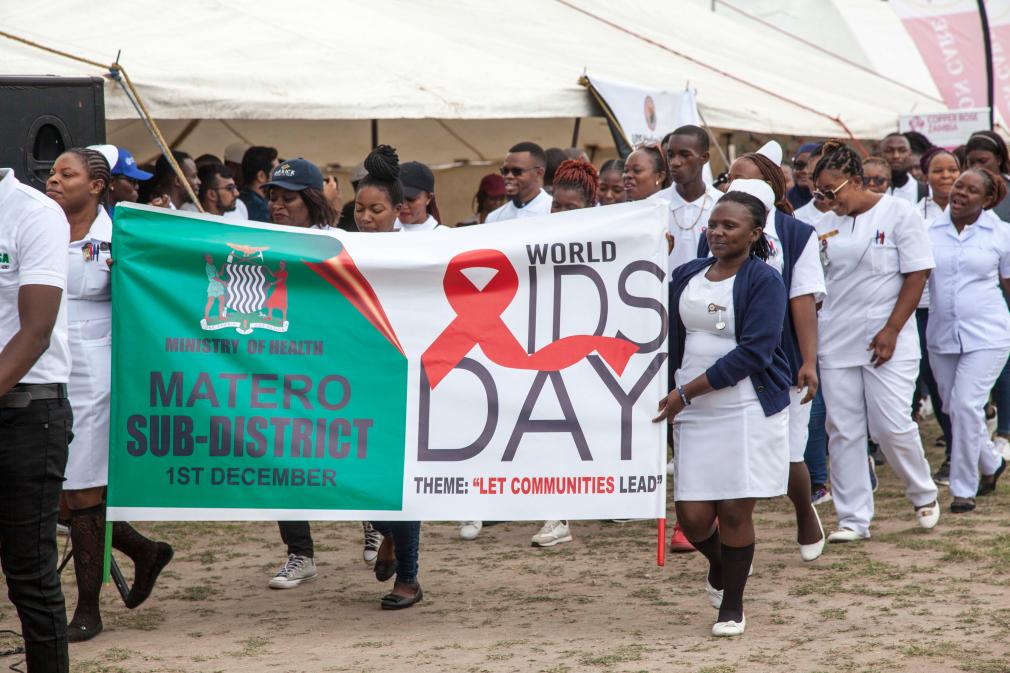 图为2023年12月1日,医务工作者在赞比亚首都卢萨卡参加世界艾滋病日宣传活动。新华社发(马丁·姆班圭塔摄)