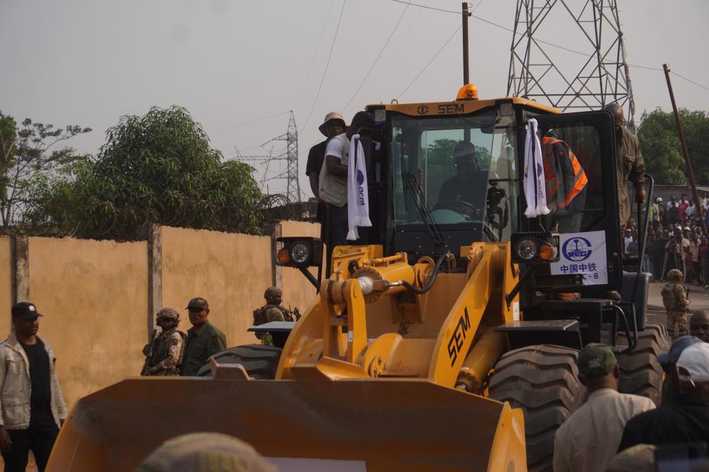 中企承建的刚果(金)首都金沙萨环线公路项目6月22日在金沙萨举行开工仪式。刚果(金)总统齐塞克迪在开工仪式上驾驶装载机为项目奠基。新华社记者 史彧 摄