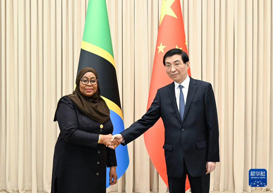 9月4日,全国政协主席王沪宁在北京会见来华出席中非合作论坛北京峰会的坦桑尼亚总统哈桑。新华社记者 申宏 摄