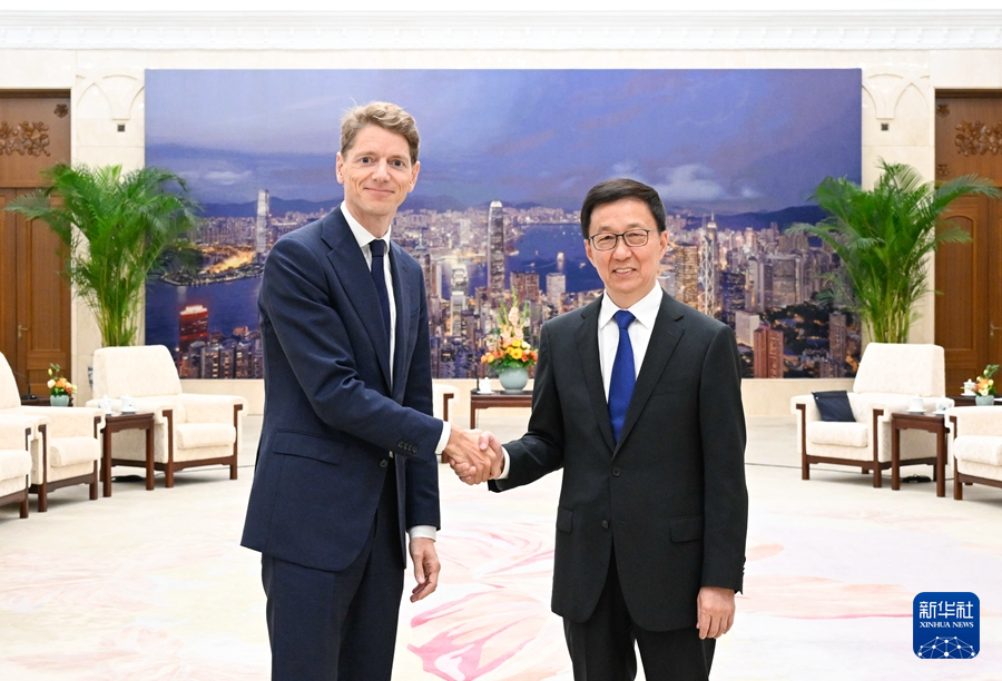 9月20日,国家副主席韩正在北京会见丹麦马士基集团董事长罗伯特·马士基·乌格拉。新华社记者 申宏 摄