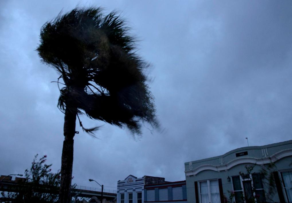 2021年8月29日,在美国路易斯安那州摩根城,一棵棕榈树在大风中摇摆。当日,四级飓风“艾达”登陆路易斯安那州,最大持续风速达每小时约240公里。新华社发(尼克·瓦格纳摄)