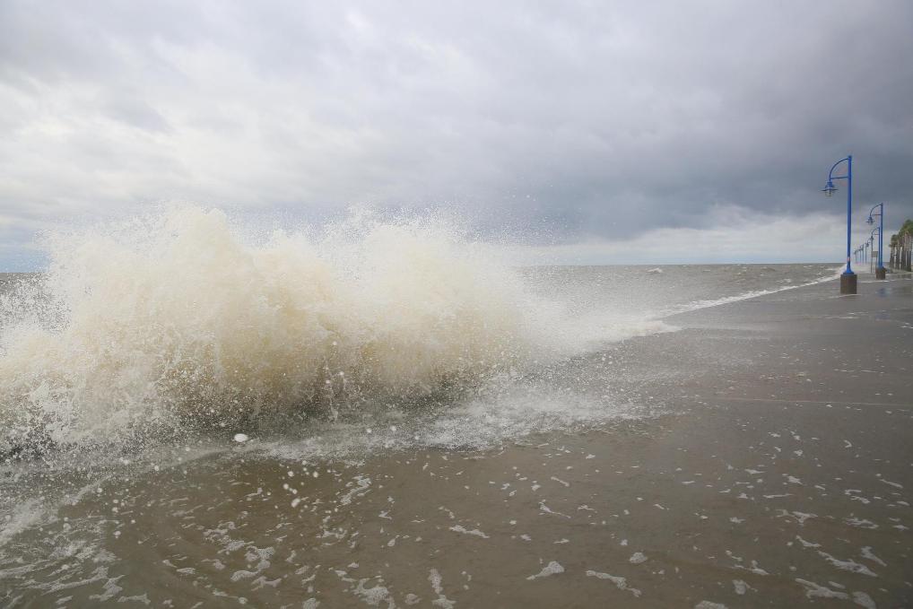 2020年9月15日,受飓风“萨莉”影响,美国路易斯安那州新奥尔良的庞恰特雷恩湖巨浪拍岸。新华社发(魏兰摄)