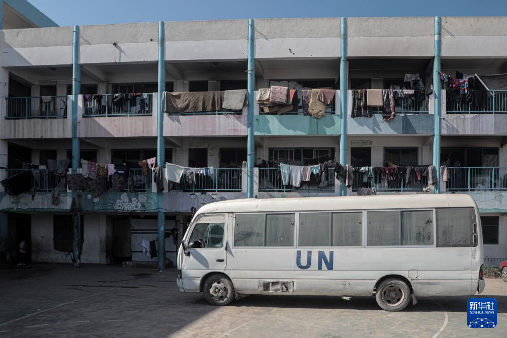 这是10月29日在加沙地带汗尤尼斯拍摄的一辆联合国机构的车辆。新华社发(里泽克·阿卜杜勒贾瓦德摄)