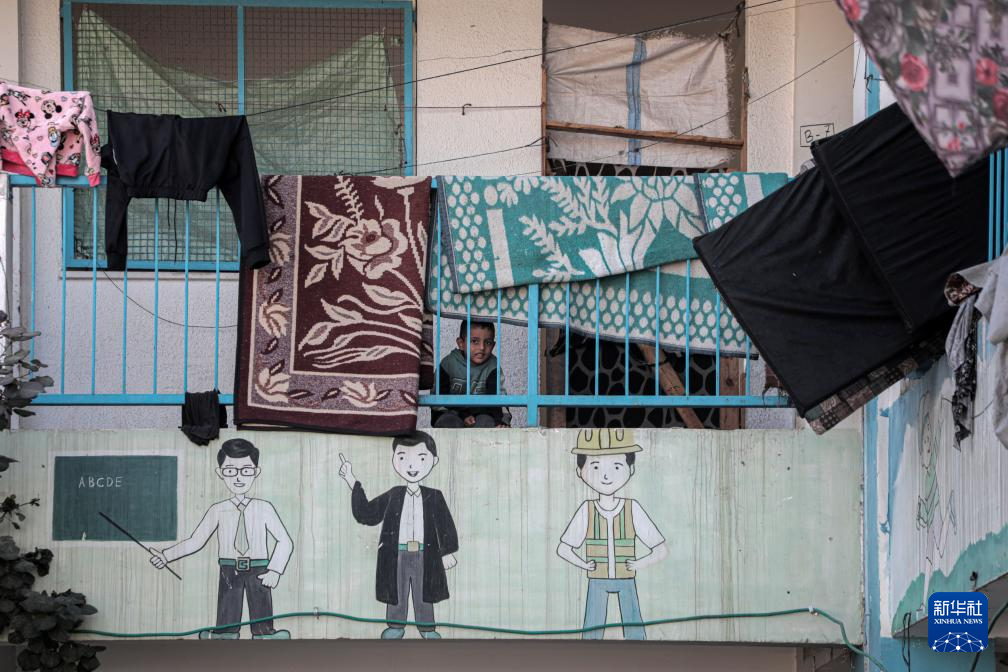 这是10月29日在加沙地带汗尤尼斯拍摄的一处联合国近东巴勒斯坦难民救济和工程处开设的避难所。新华社发(里泽克·阿卜杜勒贾瓦德摄)