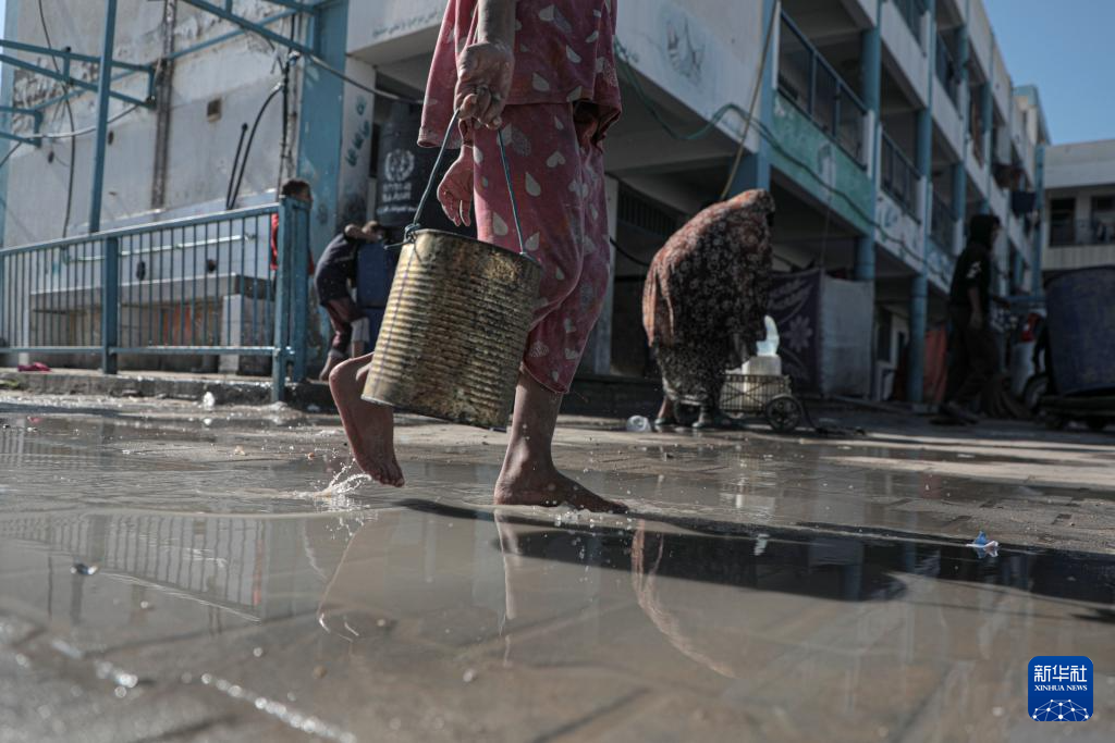 10月29日,在加沙地带汗尤尼斯,人们在一处联合国近东巴勒斯坦难民救济和工程处开设的避难所打水。新华社发(里泽克·阿卜杜勒贾瓦德摄)