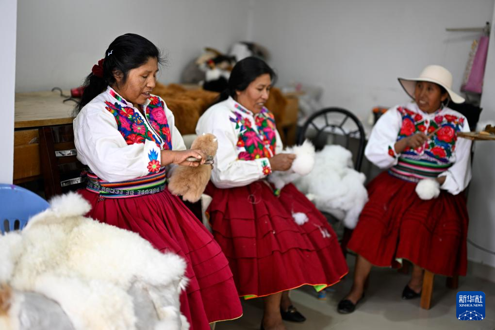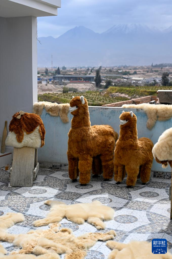 6月20日,在秘鲁阿雷基帕,工作人员在羊驼毛制品手工艺人奥斯瓦尔多·马马尼的工坊制作羊驼玩偶。