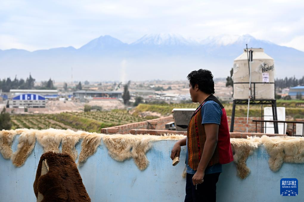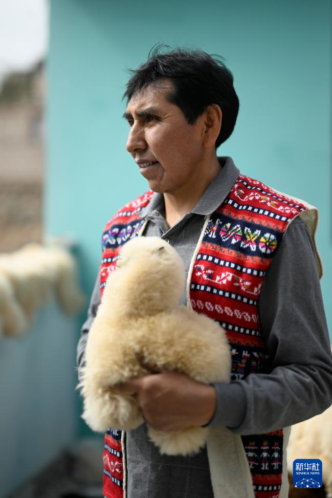 这是6月20日在秘鲁阿雷基帕拍摄的羊驼毛制品手工艺人奥斯瓦尔多·马马尼。