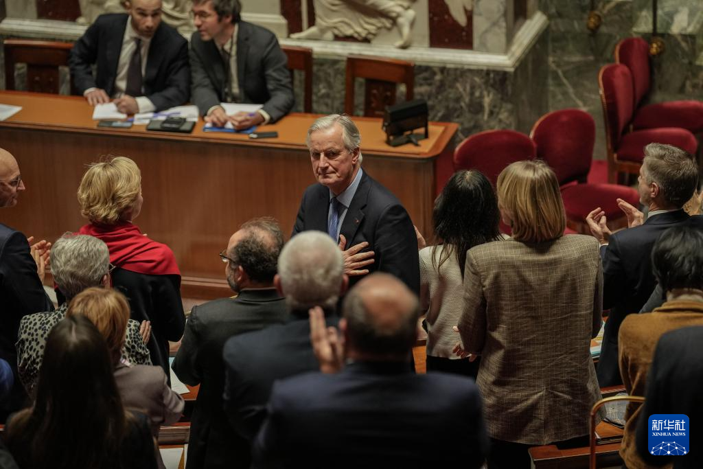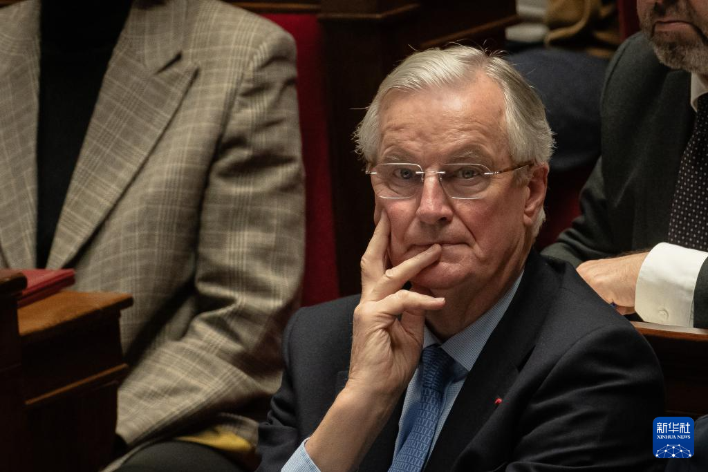 12月4日,在法国巴黎,法国总理巴尼耶出席国民议会就对政府不信任动议投票表决前辩论。新华社发(奥雷利安·莫里萨尔摄)