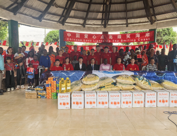 中方向冈比亚卡尼芬SOS儿童村的孩子们捐赠了大米、食用油、书包、足球等儿童日常生活、学习及运动必需品。第22批援冈比亚中国医疗队为当地儿童及工作人员提供了健康咨询及诊疗服务。