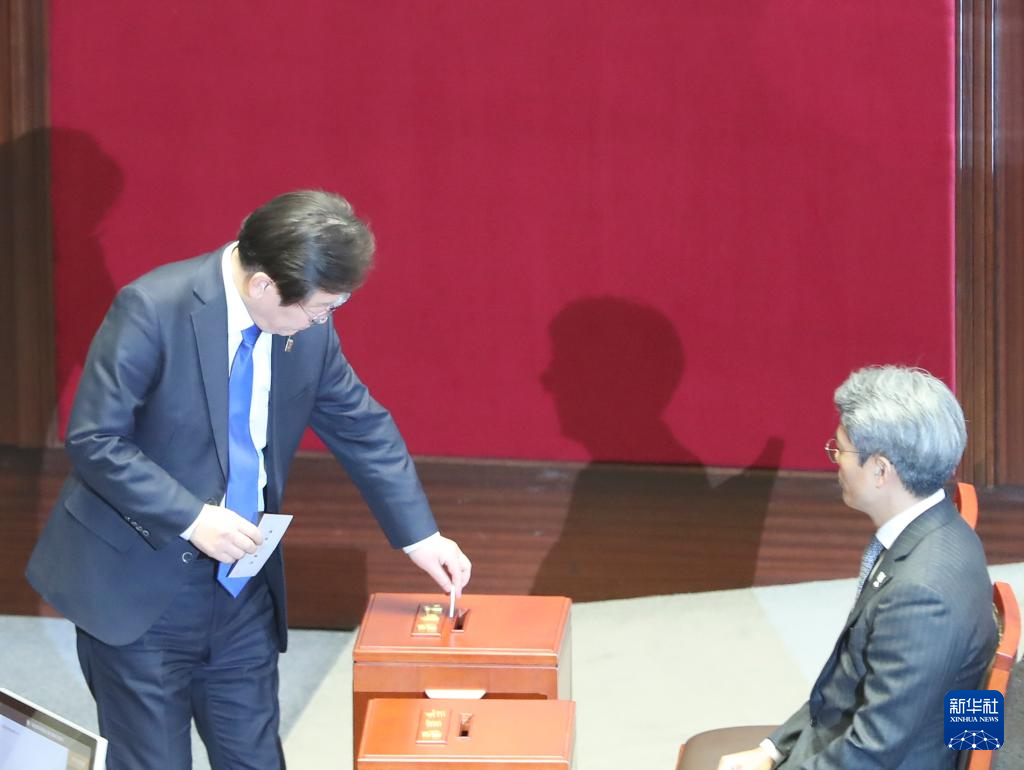 12月14日,在韩国首尔,韩国共同民主党党首李在明(左)参加弹劾动议案投票。新华社记者 姚琪琳 摄