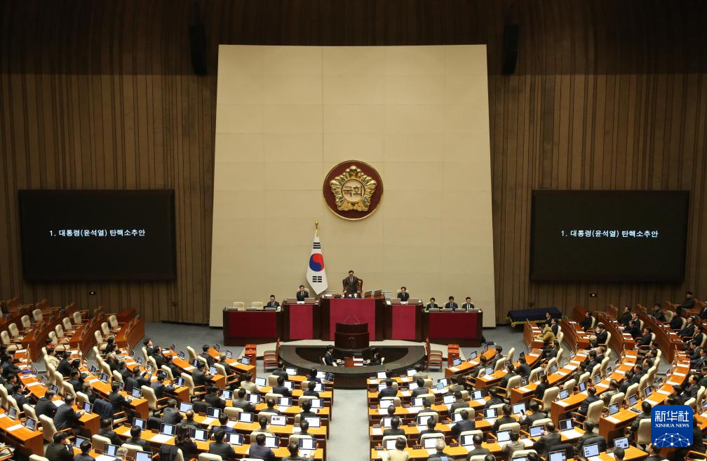 12月14日,在韩国首尔,韩国国会议长禹元植宣布弹劾动议案表决通过。新华社记者 姚琪琳 摄