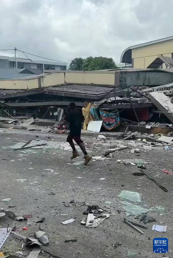 12月17日,在瓦努阿图首都维拉港,一名男子从损毁的建筑物旁跑过。 新华社发