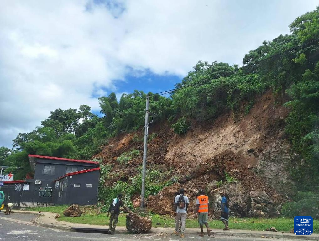 这是12月17日在瓦努阿图首都维拉港拍摄的一处山体滑坡区域。 新华社发